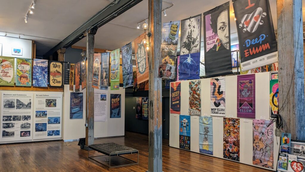 Streetpole Banners have decorated the neighborhood since 2015. Almost a decade of banner art and designs were hung up around the exhibit hall.