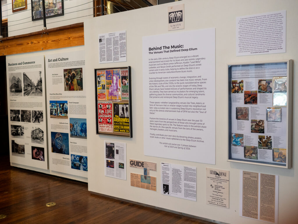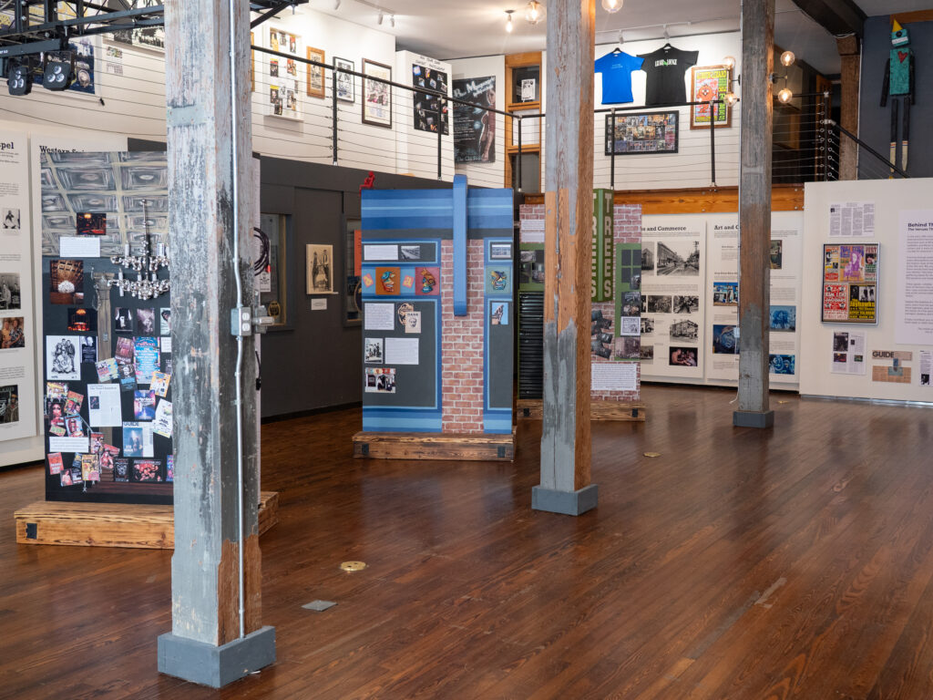 The timeline wall has been updated with more pictures of venues in the neighborhood, and the Upstairs Gallery and Flex Space also tie into the exhibit with concert posters, advertisement banners, and videos.